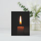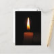 Enciende tu vida con esta elegante postal. Incluye fotografías simples de la vida de una vela marrón con una hermosa llama en tonos blancos, amarillos, dorados y naranjas. Está situado sobre un fondo negro puro.