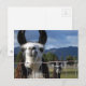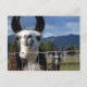 Llama sonriente divertida en el sur de Oregón. Campo de cultivo levantado para sus fibras. Según Wikipedia — Las Llamas tienen un fino abrigo que se puede usar para artesanías y prendas. El pelo protector exterior más grueso se utiliza para alfombras, colgaduras de pared y cuerdas de plomo. La fibra viene en muchos colores diferentes, desde blanco o gris a marrón rojizo, marrón, marrón oscuro y negro. —