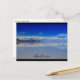 Las increíbles llanuras salinas de Uyuni en Bolivia con el horizonte y la montaña reflejadas en las llanuras cubiertas de agua.