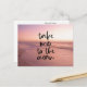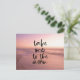 Escape al apacible abrazo del océano con nuestra postal "Llévame al océano". Esta deliciosa postal captura la esencia de la felicidad costera, con una serena escena de playa que te transportará a las costas arenosas y a las tranquilizantes olas. Tanto si eres un amante de los viajes como de la playa, o simplemente si buscas un momento de relajación, esta postal es el regalo perfecto para alguien especial. Imagínese contemplar el pintoresco horizonte, sentir la cálida arena bajo los pies y escuchar el suave ritmo de las olas. Esta postal representa la tranquilidad del océano, aportando un toque de magia costera a tu espacio. Es una adición ideal a tu decoración de casa, un encantador recordatorio de tus vacaciones en la playa, o un símbolo para mandar a amigos y seres queridos, para hacerles saber que estás pensando en ellos. Nuestro diseño de inspiración vintage capta la nostalgia del arte playero clásico, creando un atractivo atemporal que se integra perfectamente en cualquier habitación. Colóquelo en su pared, colóquelo en su escritorio o envíelo como un gesto atento a alguien que está lejos. Deja que la belleza del océano te invada con nuestra tarjeta postal "Llévame al océano". Agarra la tuya hoy y deja que las olas de relajación y de ganas te barran.