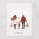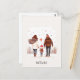 Una linda tarjeta postal de regreso a clases con una ilustración de una familia de tres donde los padres se dan la mano con el niño.