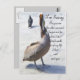 Una paloma y un pelícano. Pelican viendo a la paloma alejarse. Gran tarjeta para "Lo siento, Perdóname, te falta, viaje seguro.