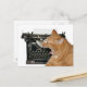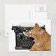 naranja o ginger tabby gato bostezando frente a una máquina de escribir vintage con el concepto de un escritor aburrido o Lo siento no he escrito pero mi vida es tan aburrida postal