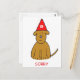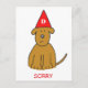 Un personalizado de un lindo perro marrón, luciendo triste, con el gorra de un zincho rojo y la palabra 'LO SIENTO' escrita debajo.