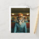 Elegante retrato de tigre en un traje azul de timbre y un gorra naranja
