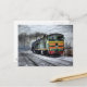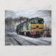 Foto de la locomotora rusa de trenes viajando en vías férreas en invierno con humo negro .