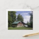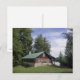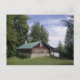 Una hermosa fotografía de una cabaña de troncos enclavada entre pinos que dominan un lago en un día soleado. Personalizable: agregue su propio mensaje con la herramienta de tipo