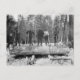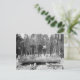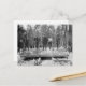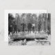 Esta postal presenta una fotografía vintage de varios leñadores antiguos, rudos y tambaleantes parados en un tronco gigante.