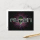 Un diseño de logo de cabeza extraterrestre verde con un extraño fondo parecido a un extraterrestre.