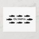 En este logo, el título "Olympia Washington" está rodeado de íconos del salmón chinook. Olympia es una de las muchas ciudades de Washington que se encuentran cerca de Puget Sound.