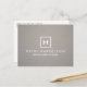 Coordina con el LOGO BOX con SU INICIAL/MONOGRAM en la plantilla de tarjeta de visita de GRAY LINEN para las 12.01 horas. Un moderno y clásico tratamiento logotipo de su inicial en una sencilla caja abierta sobre un tratamiento de fondo de lino falso. © 1201AM CREATIVE