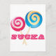 Dos cogollos en azul y rosa cruzándose entre ellos. Texto: Sucka.