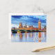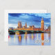 Esta pintoresca postal de viaje muestra una fotografía de la histórica e icónica ciudad de Londres, Inglaterra, en las primeras horas de la noche. Esta maravillosa postal sería ideal para amigos, familiares y colegas.