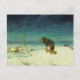 Lobo en una colina cubierta de nieve mira hacia abajo en un pueblo durmiente. Buen arte de Alfred Wierusz Kowalski.