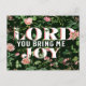 ¡Bendiciones florecientes! Difunde un mensaje de esperanza e inspiración con esta hermosa postal cristiana. Este diseño edificante presenta delicadas flores rosadas, pájaros encantadores y exuberante vegetación que rodea el mensaje "SEÑOR, ME TRAES ALEGRÍA". La forma perfecta de compartir tu fe, animar a un amigo o simplemente compartir una hermosa obra de arte. La parte trasera de la postal proporciona un amplio espacio para un mensaje personalizado.