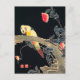 Postal Loro en la rama de un Rosa florido Bush