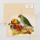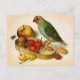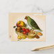 Arte de pájaro con un adorable loro pigmeo verde encaramado junto a frutas y nueces. Fabulosa vida animal aún disponible en regalos y ropa.
