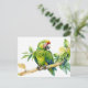 Postal Loro verde acuarela en una rama de árbol