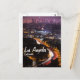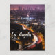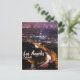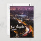 Hermosa vista del horizonte del centro de Los Ángeles por la noche. Las luces de la ciudad brillantes se pueden ver así como el tráfico en la autopista 101 en primer plano. El cielo es un hermoso color púrpura justo después de la puesta de sol.
