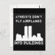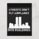 Foto de las torres gemelas del centro de comercio mundial antes del ataque del 11 de septiembre (911 nueve once de septiembre de 1911) con el título "los ateos no vuelan aviones en edificios. El 11 de septiembre, el centro de comercio mundial fue destruido despiadadamente. No por un gobierno o un científico loco o incluso por alguien con motivaciones financieras. Fue destruida por un grupo religioso fundamentalista. Nueve Eleven fue una iniciativa basada en la fe. Los musulmanes islámicos fundamentalistas asesinaron a miles de ciudadanos estadounidenses a sangre fría en nombre de Dios. Es curioso entonces que los ateos sean la minoría en la que menos se confía. Sobre todo cuando se considera que los ateos no vuelan aviones en edificios.