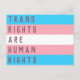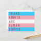 Una bandera del orgullo transgénero con el mensaje: ¡Los derechos transexuales son derechos humanos!