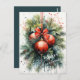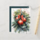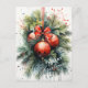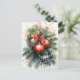 Este encantador Navidad de acuarela moderna, Mistletoe Postcard, presenta un impresionante diseño de Navidades elegantes y vegetación, que evocan el encanto de los mistletos con tonos verdes y azules, acentuados por ricos ornamentos rojos y bayas. La técnica de acuarela le da al follaje un aspecto natural y elegante, mientras que los brotes de rojo le dan calidez y festividad. "Feliz Navidad" está elegantemente escrito en caligrafía decorativa en el frente, creando un hermoso contraste que capta el espíritu de las fiestas. Esta tarjeta combina los colores tradicionales de las vacaciones con un diseño sofisticado, lo que hace que sea una manera atemporal de enviar cálidos deseos a amigos y familiares.