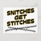 ¡La frase infame hilarante que muestra a mundo lo que usted piensa de tattle-cuentos! La fase, coloreada en negro con un esquema amarillo rodea un dentado cosido encima de la laceración.