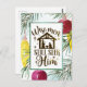 Navidades inspiradora cita postal muestra un diseño acuarela de ramas de pino con ornamentos de color púrpura y amarillo. Presenta una natividad de silueta que incluye a María, José y el Niño Jesús con el saludo, "Los sabios siguen buscándolo" _