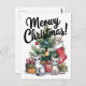 Cute X-Mas Diseño de Postcard con gatos lindos y un árbol de navidad deseando navidades maullidos.