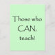 Camisetas, tazas, tarjetas, pegatinas, franqueo, bolsas de té, imanes y más lecturas: "¡Los que PUEDEN enseñar!"