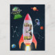 3-2-1... ¡Despegue! Llamando a todos los astronautas para celebrar y viajar a través del espacio. Asombra con esta fabulosa ilustración temática espacial. Crea un fotomontaje para un tercer cumpleaños en forma de un gran número tres. Reemplaza las imágenes de muestra con tus propias fotos. Este diseño presenta un escenario espacial nocturno con planetas, estrellas y constelaciones. Vuela con un cohete espacial junto a un platillo volador con un alienígena verde lindo y un astronauta. Gran regalo para un tercer cumpleaños. Fotomontaje personalizado del número 3 para un producto único y muy especial.
