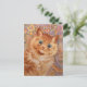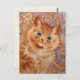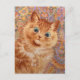 Postal inspirada en una encantadora pintura al gato del artista británico Louis Wain (Ginger cat, 1931). La imagen muestra un primer plano de un gato dulce de color jengibre. El gato tiene ojos grandes, una pata elevada y un aspecto bastante sorprendente. El fondo está bellamente decorado en un colorido estilo caleidoscópico.