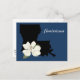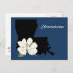 El diseño presenta la silueta del estado de Luisiana y un dibujo de la flor del estado, la magnolia.