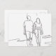 This line drawing captures a romantic moment of a couple walking hand-in-hand along the beach, surrounded by the gentle waves and soft sands. The figures are depicted in a relaxed stride, with the flowing lines conveying a sense of movement and ease. Their silhouettes reflect a shared joy and connection, as they enjoy the serenity of the ocean.