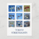 Una postal que muestra nueve de los muchos diseños de farolas que iluminan las calles de Tokio. Los diseños añaden color y belleza a la vida cotidiana y a menudo reflejan la historia cultural y social de la zona local.