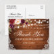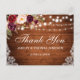 Postal de Agradecimiento para Boda con Luces de Cadenas de Madera Rústica y Flores de Borgoña en Acuarela