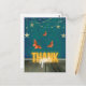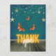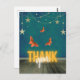 La viñeta de aspecto vintage mágico tiene una guirnalda de estrellas, mariposas naranjas y "Gracias" en texto neón en un suelo de madera rústica.