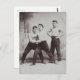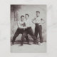 Esta postal contiene una fotografía vintage de tres guapos luchadores victorianos, musculosos y sin camisa.