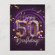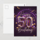 Postal Lujo Glam Púrpura y Dorado 50 Cumpleaños
