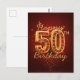 Postal Lujoso Cumpleaños 50 con Gemas Rojas y Doradas