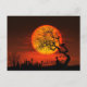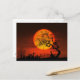 Un gato sube a un árbol cuando una luna llena se eleva sobre un cementerio.
