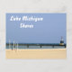 La luz de baliza en las orillas del lago Michigan de Chicago con texto de orillas del lago Michigan
