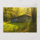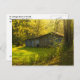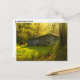 Fotografía de viaje en la zona rural de Tennessee Occidental de un granero vintage con luz de la mañana enmarcada por árboles con hojas de primavera iluminadas.