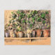 Postal de arte fino con la pintura del artista francés Paul Cézanne (1839-1906) titulada, Flores ollas (1887). Una quietud de varias macetas de arcilla llenas de geranios en un invernadero en la finca Cézanne en Aix, Francia.