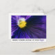 Postal minimalista moderna con una foto original en macro de una hermosa flor púrpura. La inspiradora cita en negro y púrpura dice "Donde las flores florecen, también la esperanza".