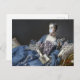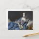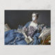Madame de Pompadour soplando un chicle azul. Era amante del rey Luis XV y una figura influyente de la corte francesa. Ella está vestida con un suntuoso vestido de satén azul reclinándose con un libro.