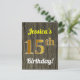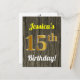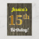 Este diseño de tarjeta postal simple y personalizada con tema de cumpleaños presenta un mensaje personalizable como "¡El cumpleaños número 15 de Jessica!" en la parte delantera, donde se puede cambiar el nombre, y con el "15" con una apariencia similar al oro. La parte delantera también presenta un fondo con apariencia de madera falsa. La parte trasera presenta un mensaje personalizado y una dirección del destinatario personalizada. El mensaje y/o la dirección del destinatario pueden dejarse en blanco si se van a rellenar a mano. Podría enviarse como un saludo a alguien que está celebrando su cumpleaños número quince, o quizás tarjetas postales como estas podrían utilizarse como invitaciones al invitar a invitados a una fiesta que se celebra para conmemorar el cumpleaños número quince de alguien. [~Z0000106]