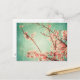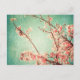 Postal Madera verde azulada y flor de cerezo añejos elega