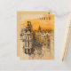 Esta postal de viaje, en forma de boceto dibujado a mano, muestra una vista del paisaje urbano de Madrid.