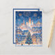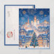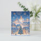 A festive Christmas cityscape illuminated by glowing fireworks and holiday lights. Snow gently falls over cozy buildings, capturing the warmth and wonder of a winter night celebration.